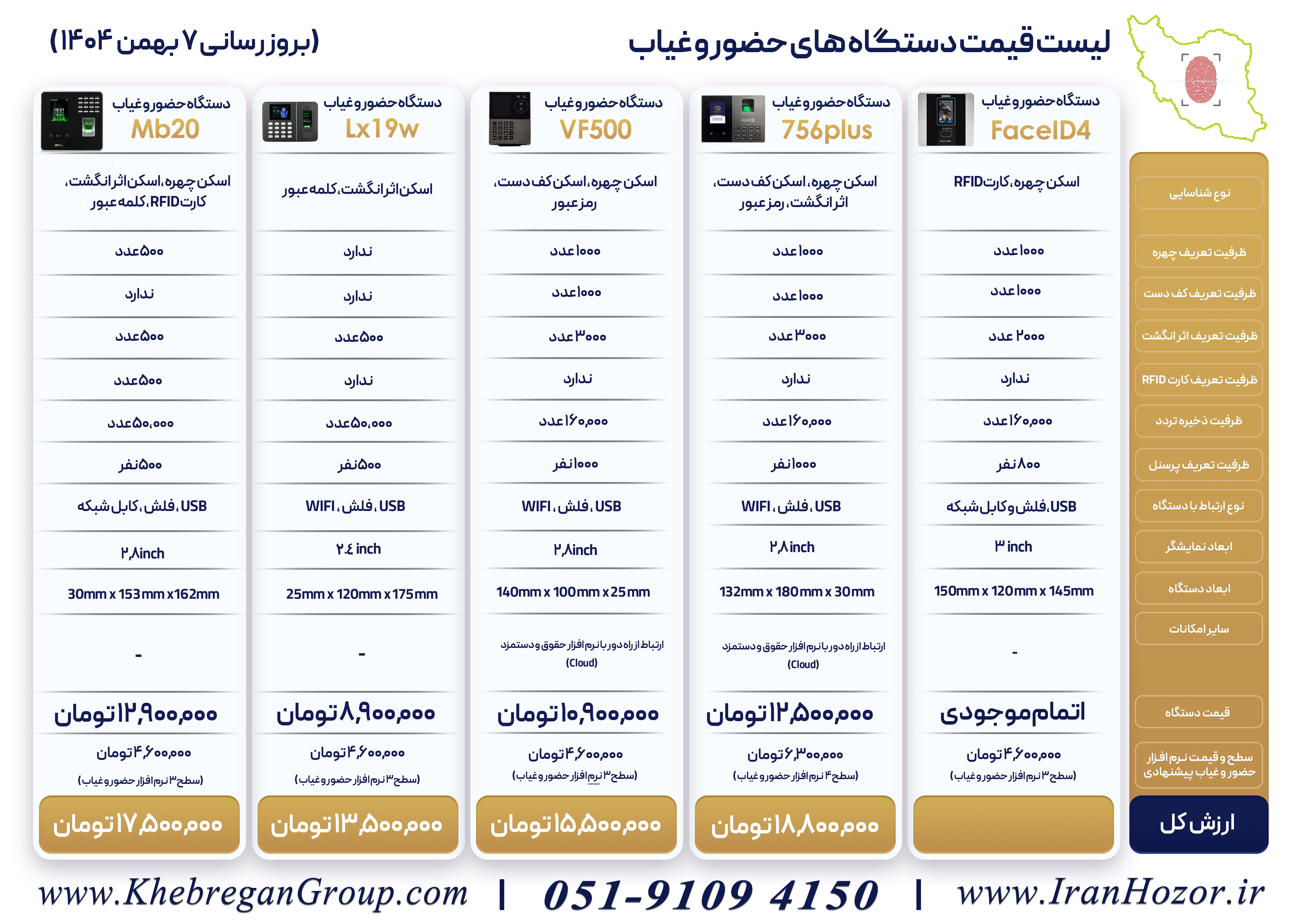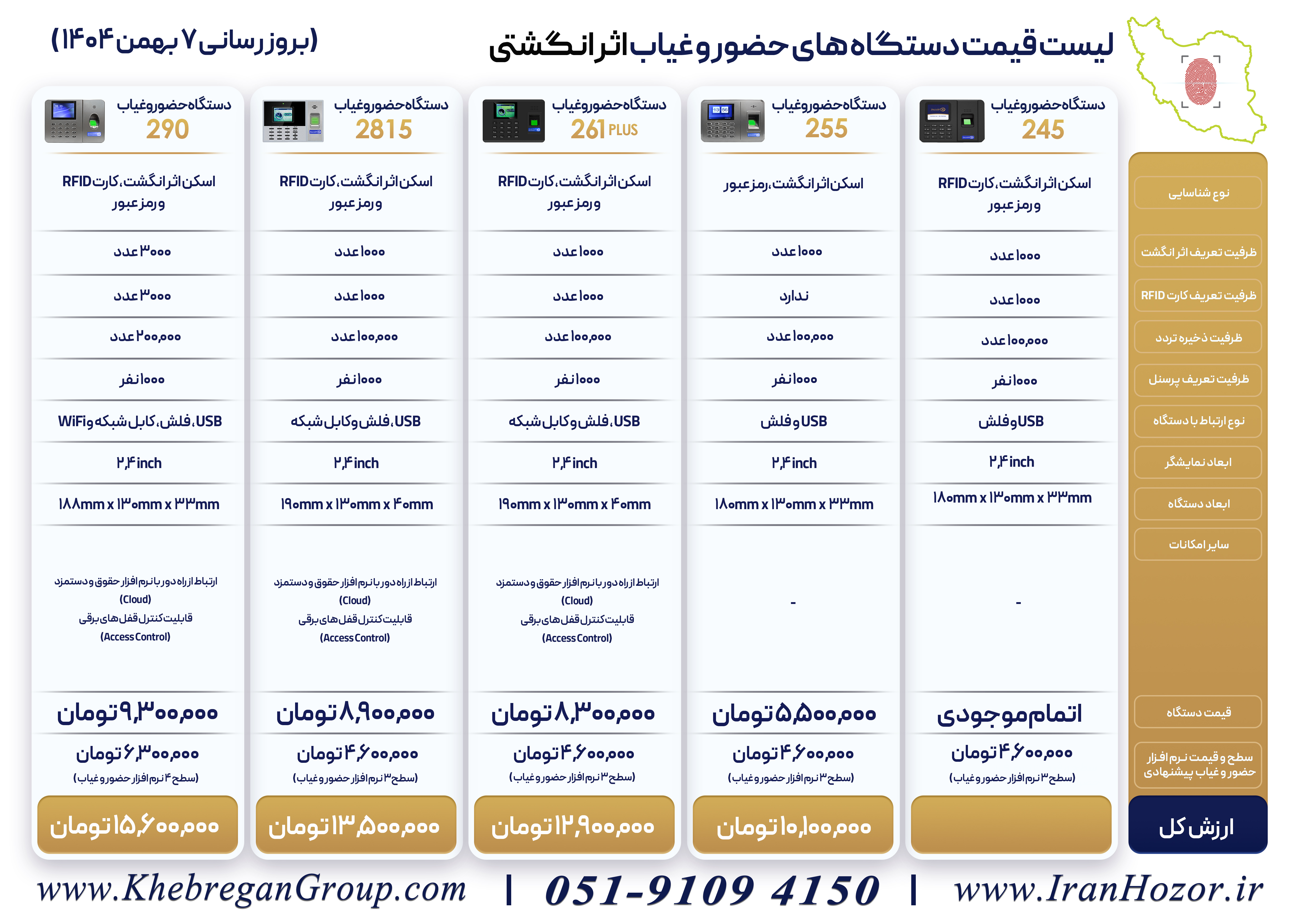 لیست جامع دستگاههای حضور و غیاب به همراه نرم افزار مناسب با هر دستگاه و همچنین لیست سطوح مختلف نرم افزارها به همراه امکانات و قابلیت های هر سطح ارائه شده است. همکاران می توانند از مساعدت های همکاری بهره مند گردند.